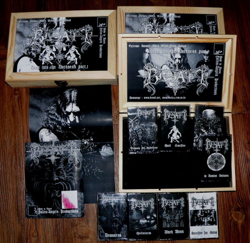 ポーランドのブラック・メタル・バンド、Besattのボックスセット。 Tape.1 - in Nomine Satanas Tape.2 - Hail Lucifer Tape.3 - Hellstorm Tape.4 - Sacrifice for Satan Tape.5 - Black Mass Tape.6 -Triumph Of Antichrist Tape.7 - Demonicon Tape.8 - Tempus Apocalypsis